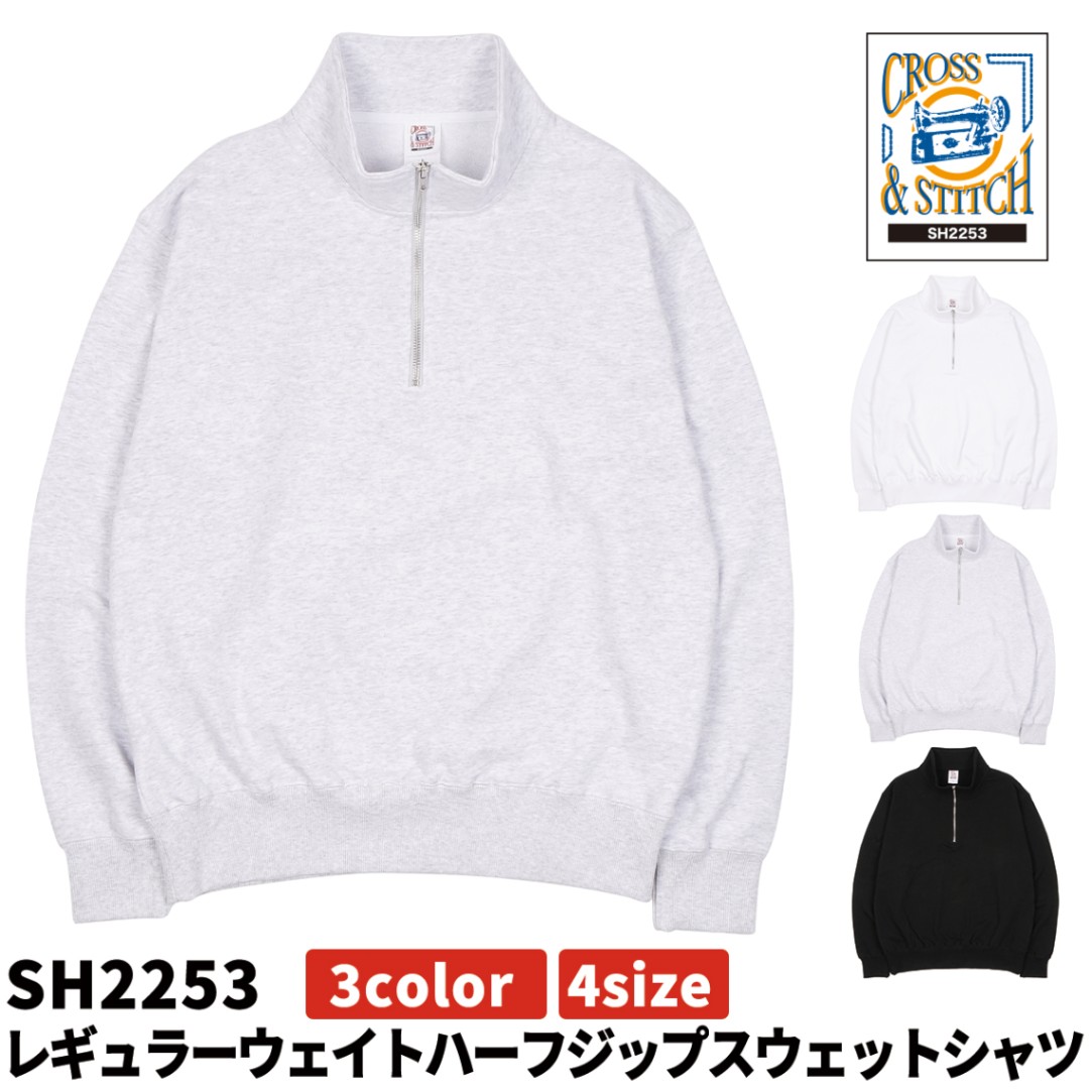 TRUSS トラス CROSS&STITCH クロスアンドステッチ レギュラーウェイトハーフジップスウェットシャツ 裏毛 男女兼用 ユニフォーム 作業着 SH2253 宅配のみ