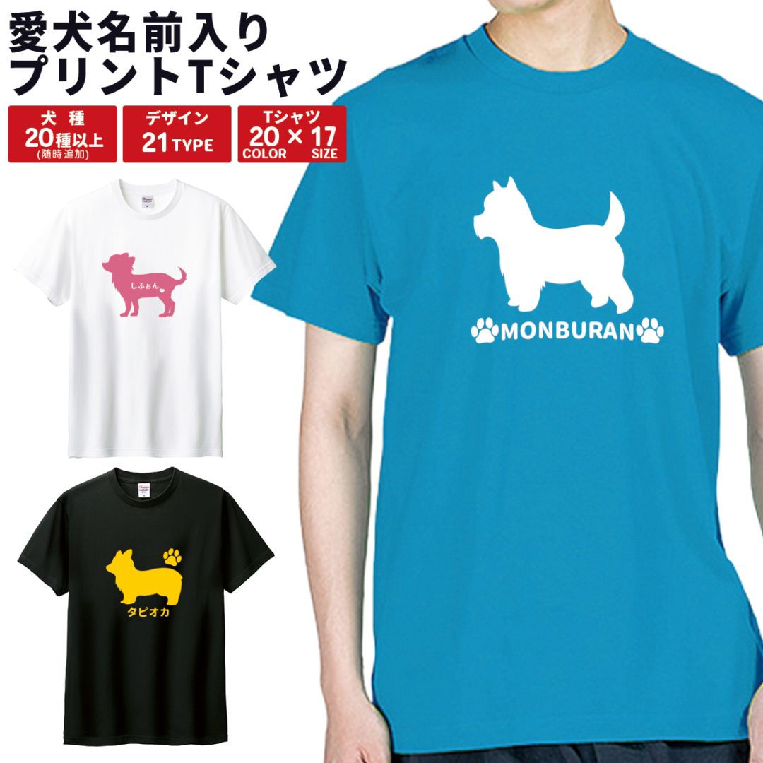 オーダーメイド ドッグシルエット Tシャツ 半袖 綿100% 名入れ プリント 愛犬 ロゴ ネーム入り メンズ レディース【ラッピング資材同梱可】 00085-CVT メール便可1
