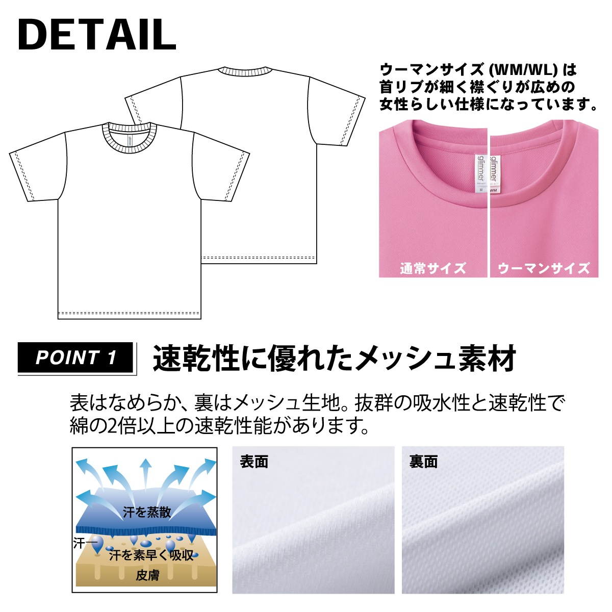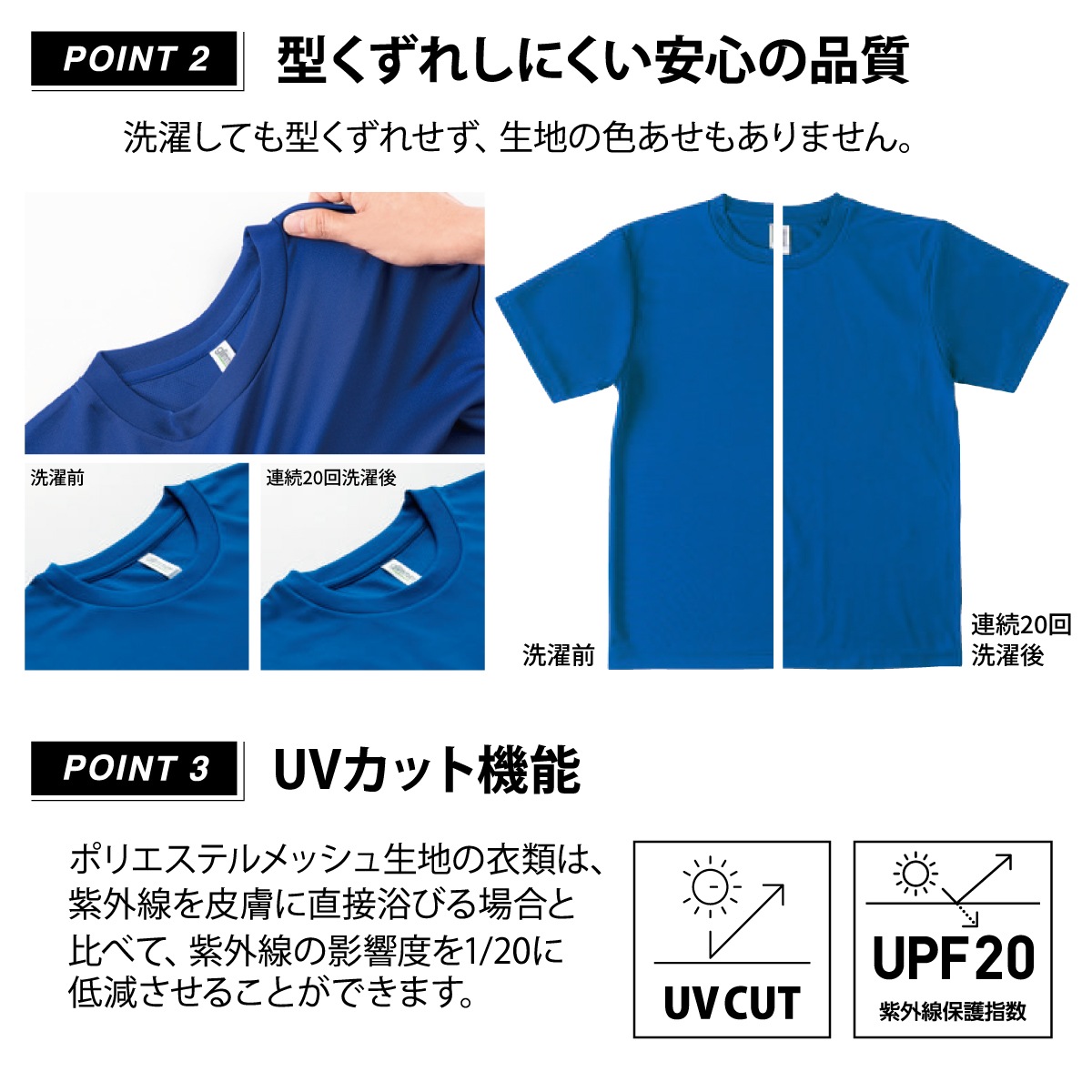 やや薄手 吸汗速乾 UV CUT UPF20(紫外線保護指数) |
