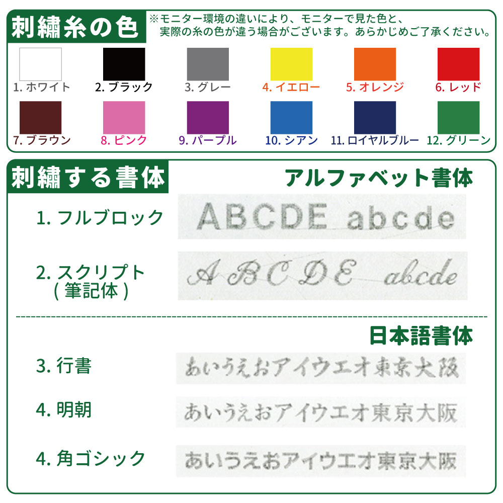 刺繍する書体