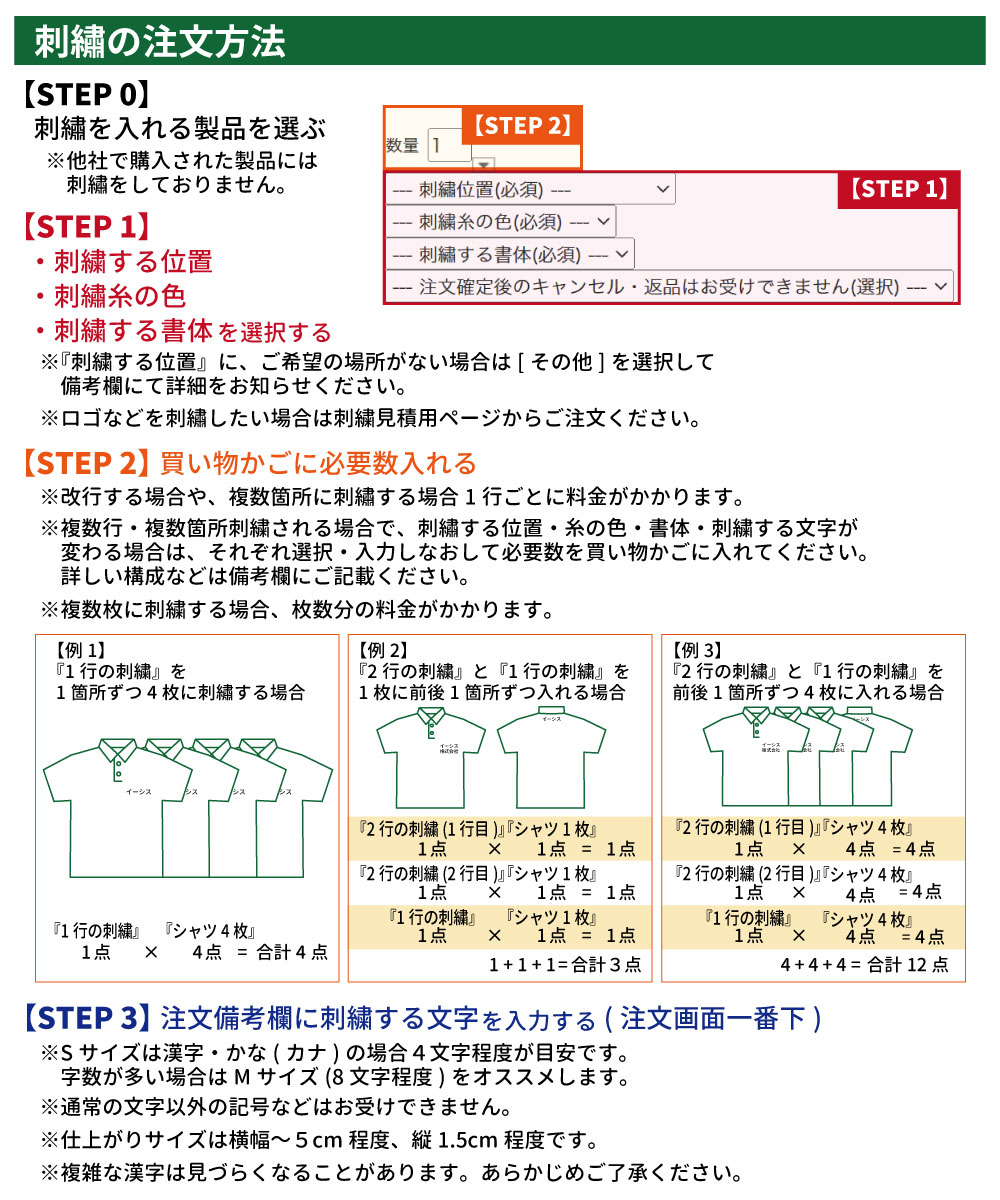 ・ロゴマークの刺繍をご希望の場合は別途お見積りとなります。