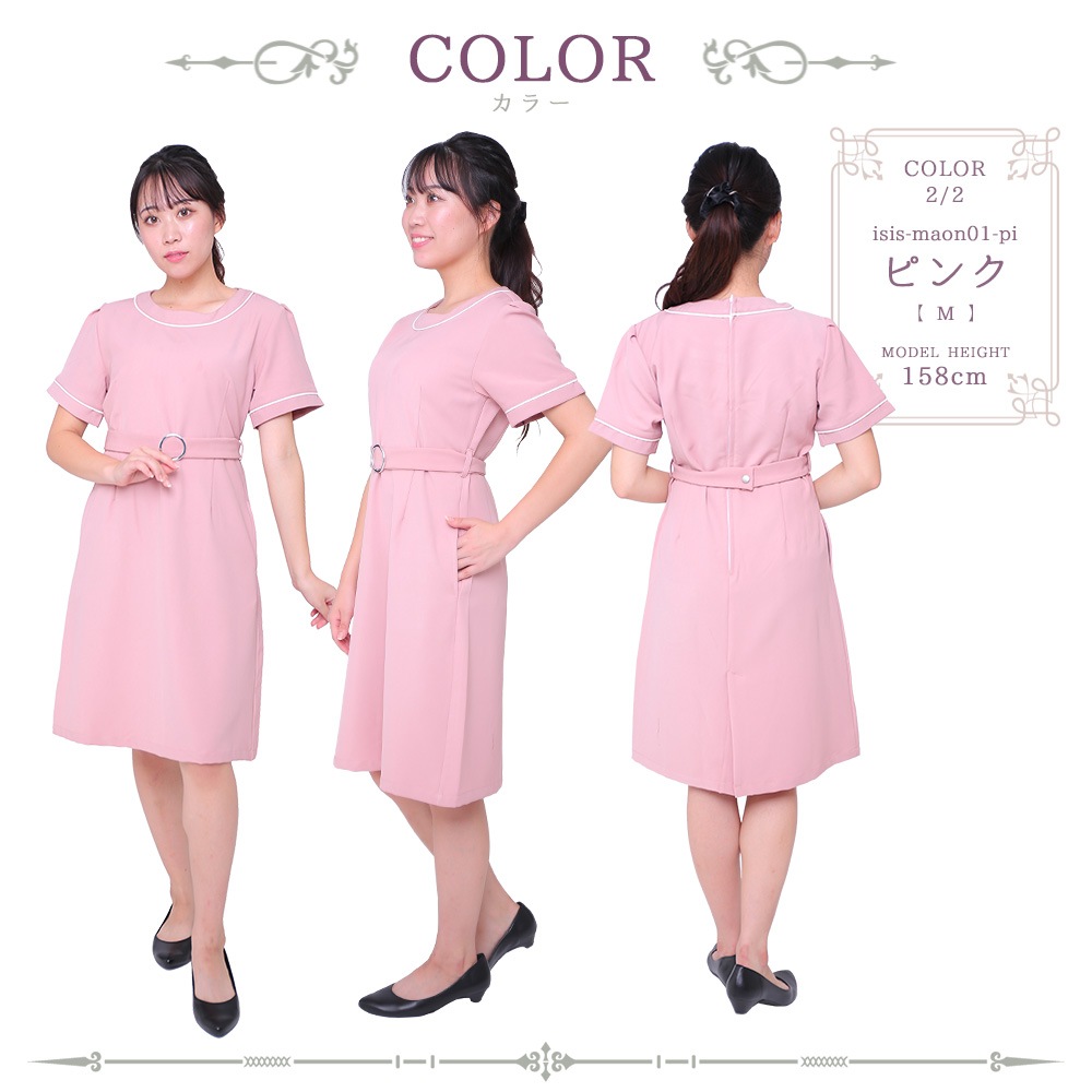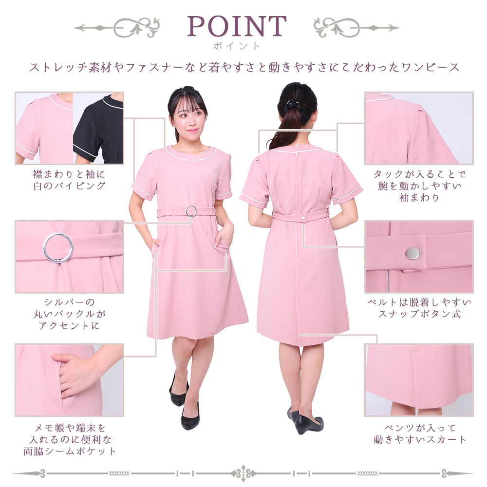 エステ ユニフォーム ワンピース 制服 半袖 美容 医療 事務 受付 業務用 レディース 女性用 おしゃれ かわいい 無地 シンプル メディカル ネイル サロン アイリスト クリニック ストレッチ 背中ファスナー ポケット付 宅配のみ