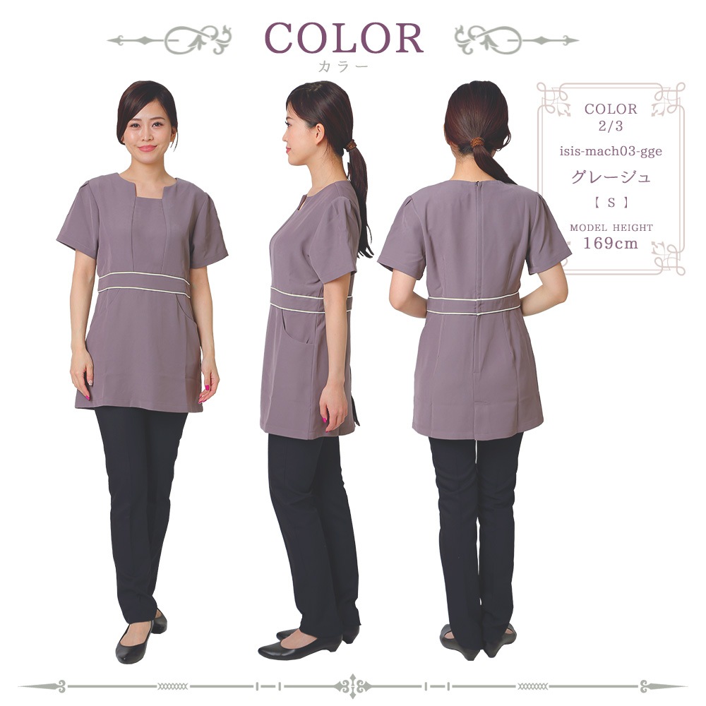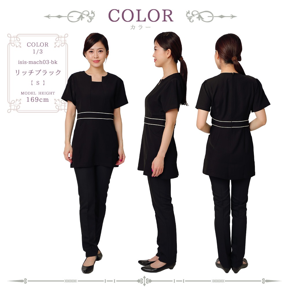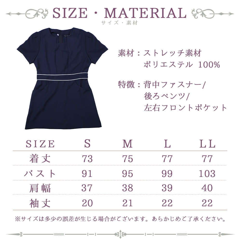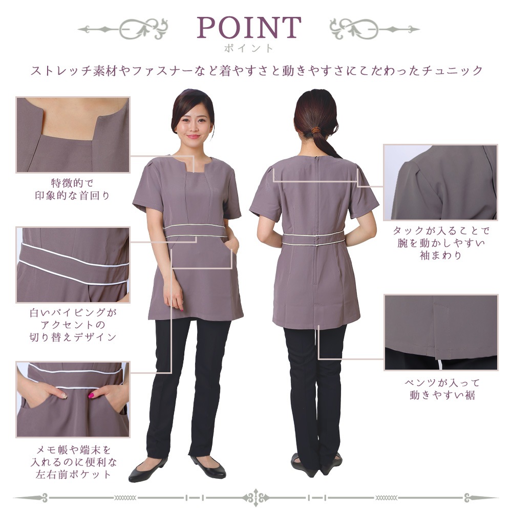エステ ユニフォーム チュニック 制服 半袖 美容 医療 事務 受付 業務用 レディース 女性用 おしゃれ かわいい 無地 シンプル メディカル ネイル サロン アイリスト クリニック ストレッチ 背中ファスナー ポケット付